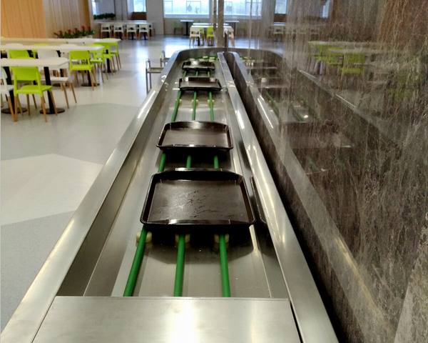 怎樣用最低的成本解決餐具從餐廳到洗碗間的距離問題?為客戶提(tí)供定製化的餐(cān)具傳送(sòng)係統,各(gè)種角度的轉彎傳送(sòng)等(děng),靈活解(jiě)決用戶的場地限製難題(tí)。 根據場地實際情況不同,以上配置可以靈(líng)活組合使用,進而合理利用餐廳和廚房空間,規劃最佳工作(zuò)路徑和動線。