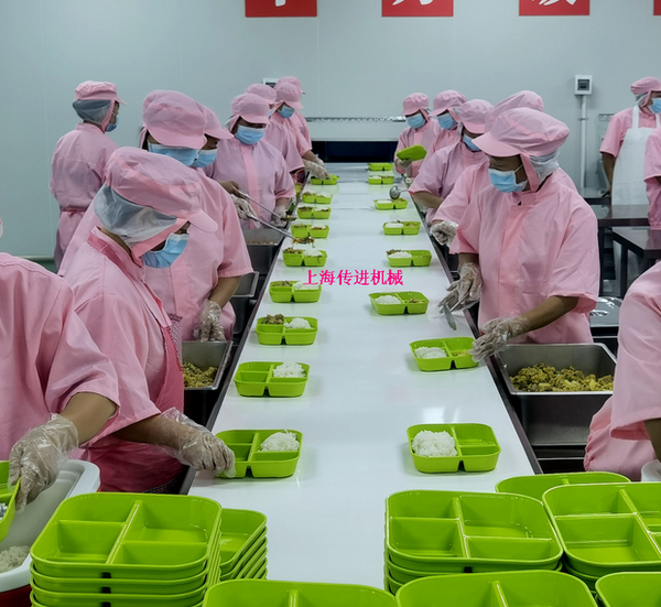 2、自動分(fèn)裝(zhuāng)機用來分裝米飯(fàn),配餐輸送線就是一個流水線,用於流水操作使用。